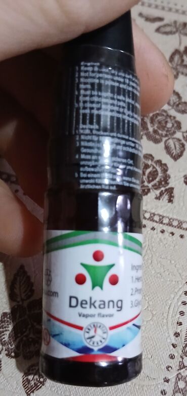 - E‑tečnost Dekang (bočica 10 ml, “Vapor flavor”; deklaracija na etiketi).
