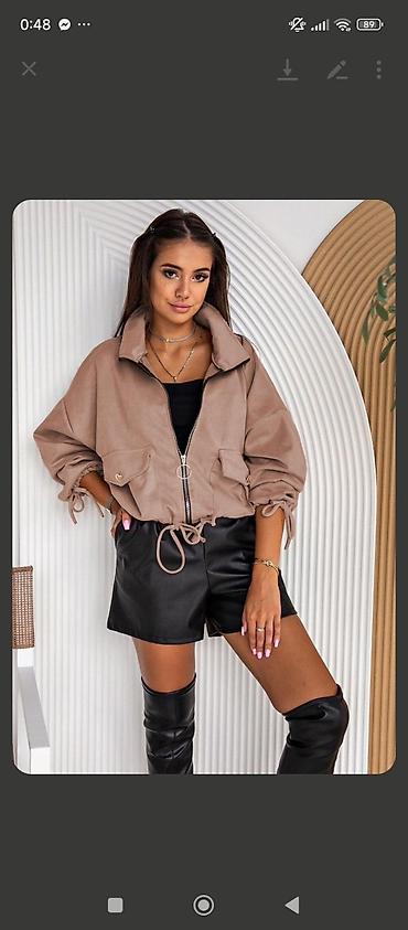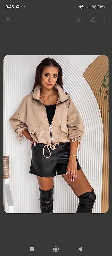 Ženska kožna jakna – biker stil - Boja: crna, mat sjaj - Materijal: koža (vizuelno glatka spolja, prošiveni paneli) - Kroj: strukirani, uz telo, asimetrično kopčanje rajsferšlusom - Detalji:...