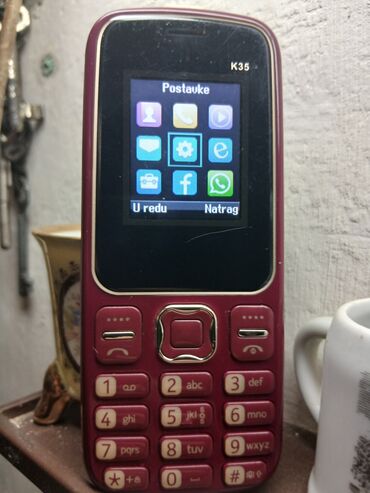 Klasčni mobilni telefon K35 u bordo boji, sa fizičkom numeričkom tastaturom i navigacionim tasterom. Kompaktan i jednostavan za upotrebu.