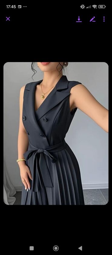 Elegantan ženski kombinezon bez rukava sa širokim nogavicama i V-izrezom. Dizajniran sa širokom kragnom i velikim, ukrasnim dugmadima zlatne boje, koja dodaju sofisticiranu notu. Kombinezon ima pra...+381 60 72472xx