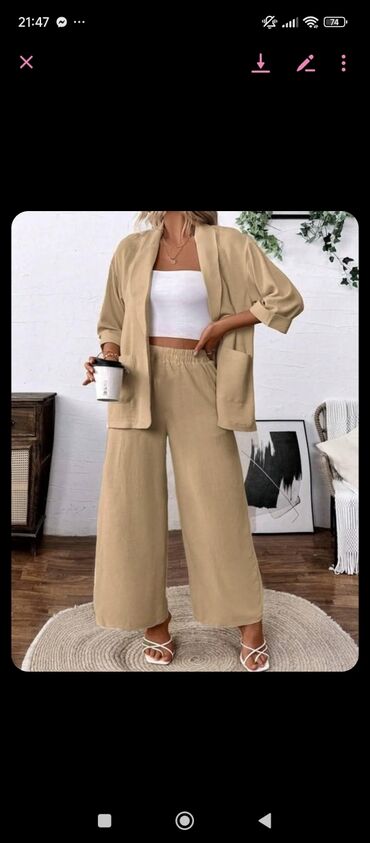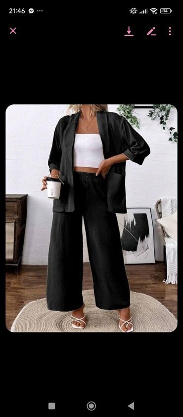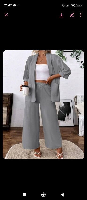 Potpuno ocuvan komplet sako i pantalone, bez ikakvih ostecenja. Od gispodje sudije koja premo mene prodaje nagomilane stvari. Sve je ili potpuno novo ili tek malo noseno, a kupovala je svuda po sve...