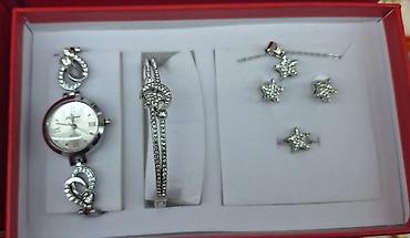 Srebrni set lančić + narukvica – pleteni „foxtail” dizajn -