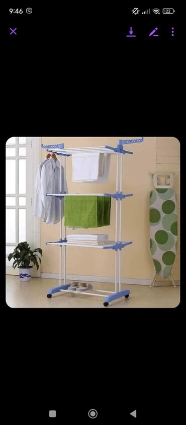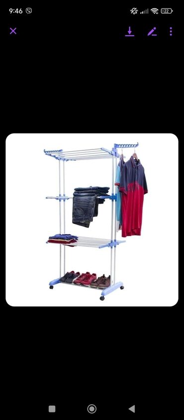 👉Opis: Predmet je sklopiv, stalak za sušenje sa 3 sloja dizajna za vešanje odeće i odlaganje cipela. Vešalica za cipele napravljena je od plastike i gvožđa. Sklopiv je, lako se instalira i uklanja. Sa 4 točka je lako za kretanje. Može se koristiti za vešanje odeće, peškira, posteljine i još mnogo toga.