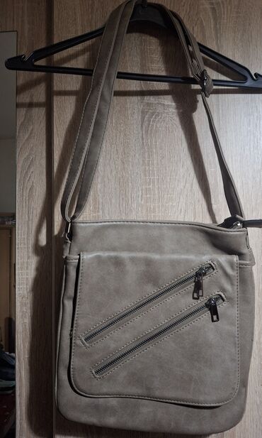 Tel. ) Preko ramena, taupe/siva, glatka eko-koža
