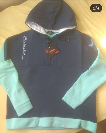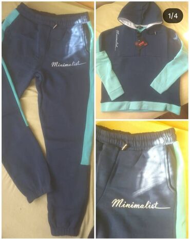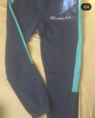 Zimska trenerka "Minimalist", dvodelna. Veoma prijatan pamuk. Teget boje sa zelenim aplikacijama. Dostupna u veličinama M i XL. Nova, sa etiketom.