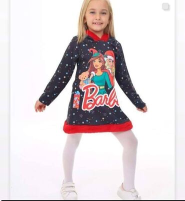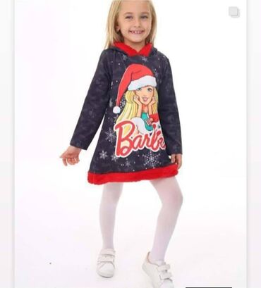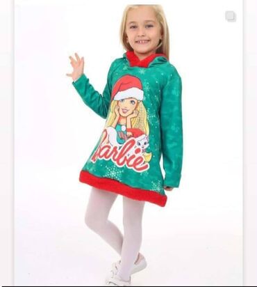 Dug rukavDečija haljina/tunika sa kapuljačom – Barbie, novogodišnji motiv