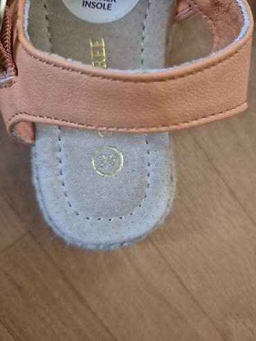 - Model 1: svetlonarandžaste sandale Gold Pffeil by S’Oliver (oznaka “S’Oliver”/“Goldpfeil”), udobno anatomsko gazište, mekana kožna/poliuretanska postava sa narandžastim kaiševima, kopčanje na zlatnu metalnu petlju. Uložak sa oznakom 25.