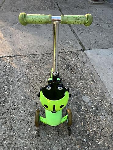 Boja: neon zelena sa crnim detaljima i prozirno-braon točkovima (prednji točkovi sa plavim središtem). Pogodno za mlađu decu koja uče ravnotežu i vožnju.