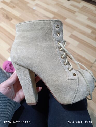 O trošku kupcaDuboke cipele na štiklu, broj 37,tople, udobne, visina pete 12,5cm, boja krem, nošene par puta, pogodne za prelazno vreme ili zimi.