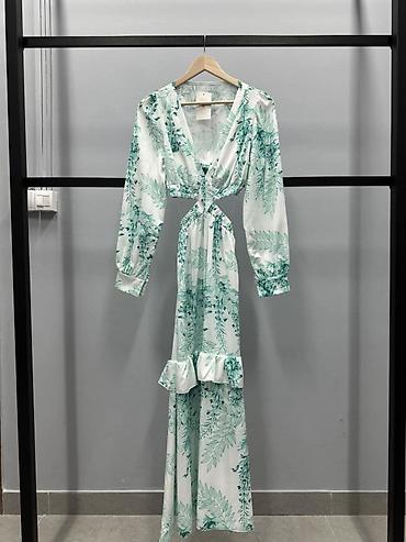 Dugačaka letnja haljina sa tropskim printom - Krojen V-izrez napred