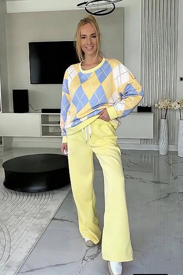 - Gornji deo: oversize duks sa okruglim izrezom i dugim rukavima. Prepoznatljiv argyle (romb) dezen u kombinacijama pastelnih boja: roze–bež–belo, žuto–plavo–belo, roze–lila–belo i braon–svetloplavo–belo. Rastegljive ranfle na rukavima i na struku.