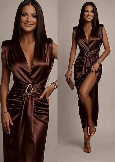 - Materijal: glatki, sjajni saten koji lepo pada i prati liniju tela