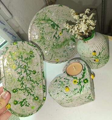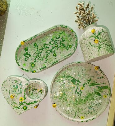 Keramičke saksije/žardinjere za mini biljke – set različitih modela - Materijal: bela keramika/gips, mat završna obrada, spremno za farbanje ili ostavljanje u prirodnoj boji - Otvori za sadnju na ...