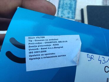 Alfa RomeoFilter vazduha ALFA Romeo 147 JTD. NOVO. .. Proizvodjac CHAMPION. Cena 800 dinara. ..