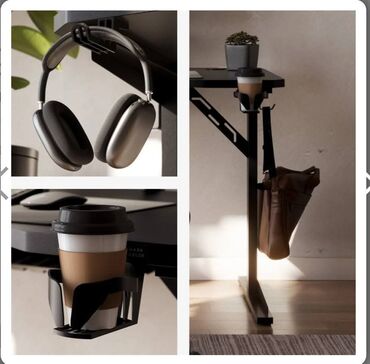 - Integrisan držač za slušalice ispod ivice stola – slušalice uvek pri ruci, bez zauzimanja prostora.