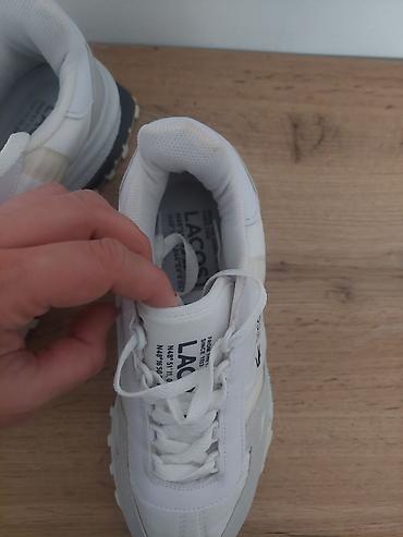 Lacoste ženske patike – bele/ekru nijanse, model sa retro running izgledom.Nosene par puta.