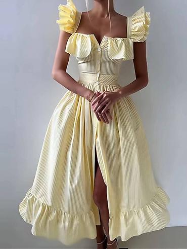 Letnja midi haljina sa volanima i dugmadima spreda - Kroj: struk