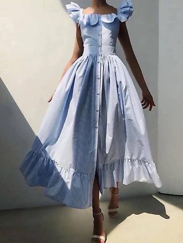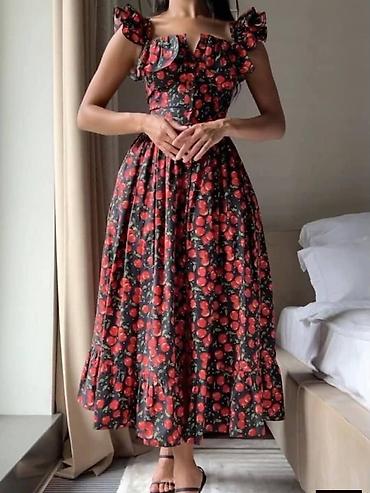 Letnja midi haljina sa volanima i dugmadima spreda