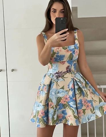 Letnja mini haljina sa cvetnim printom - Kroj: struk naglašen, gornji