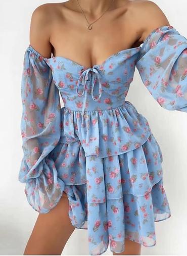 Mini haljina s cvetnim printom - Model: kratka haljina sa volanima u
