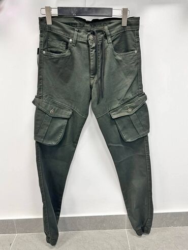 - Kroj: jogger/cargo, sužene nogavice sa elastičnim manžetnama na dnu