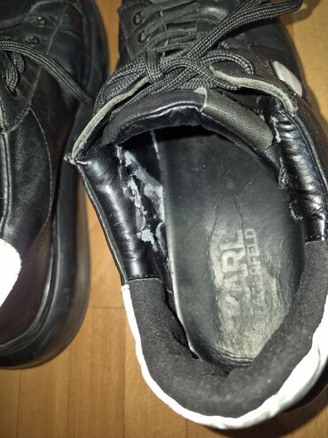 - Oznake i tragovi habanja prisutni na peti (oko belog dela sa logotipom), unutrašnjem rubu oko članka i uložcima.