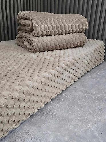 - Materijal: pliš/mikrofiber visokog kvaliteta, gust i nežan na dodir, sa 3D „kvrnastom” teksturom koja daje luksuzan izgled i dodatnu toplinu.