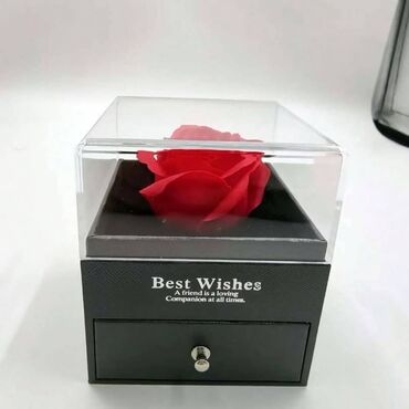 - U gornjem delu nalazi se dekorativna crvena ruža pod providnom kupolom.