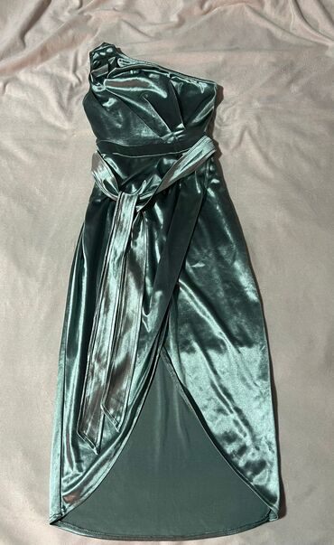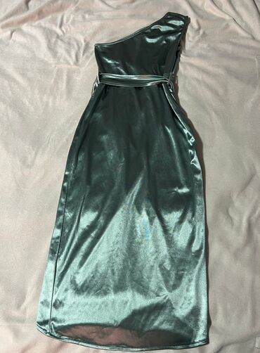 Prelepa saten haljina zelena jednom nosena velicina M lepsa uzivo