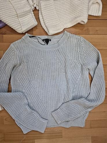 - Svetlosivi pleteni džemper H&M Basic; klasičan okrugli izrez, teksturano pletivo, rebraste manžetne i struk.
