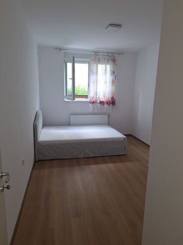 - Spavaća soba: francuski ležaj/madrac, prozor sa zavesama, radijator.