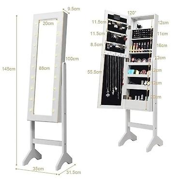 Stojeće ogledalo sa LED rasvetom i ugrađenim ormarom za nakit i kozmetiku