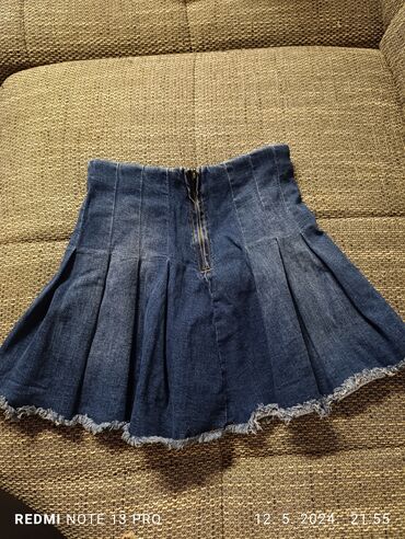 O trošku kupcaSuknjica veličina XS, materijal teksas, mini dužina, nošena par puta, lagana i udobna.