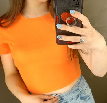 Top majica veličina M, jarko naranđasta boja, savršeno za letnje dane, materijal poliester i elastin.