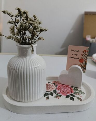 Drvena dekorativna vaza/holder sa tri kružna otvora na gornjoj strani. Ručno oslikana u toplim nijansama (oker, terakota i prirodna boja drveta) sa glatko zaobljenom, ovalnom formom. Idealna za suv...