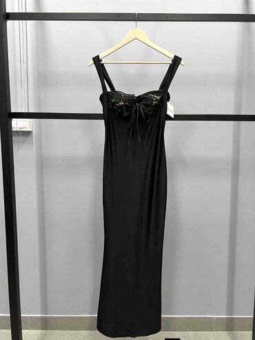 Crna duga haljina sa čipkanim korsetnim gornjim delom