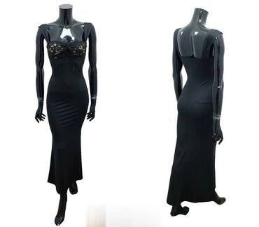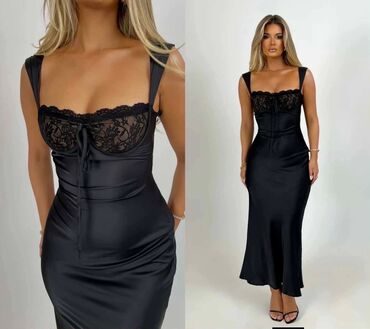 Crna duga haljina sa čipkanim korsetnim gornjim delom - Elegantna