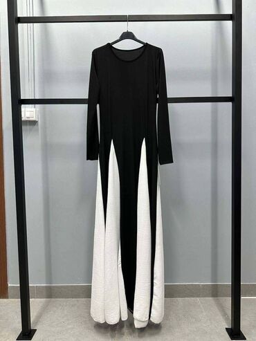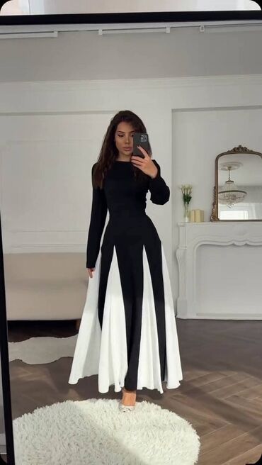 Elegantna duga haljina u kontrastu crne i bele boje.