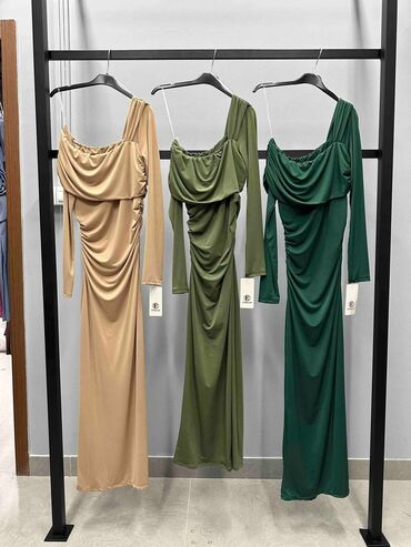 Elegantna duga haljina sa naborima i asimetričnim izrezom