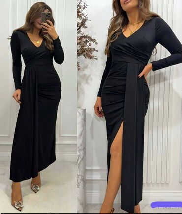 - Dužina: maxi, sa visokim šlicem sa jedne strane