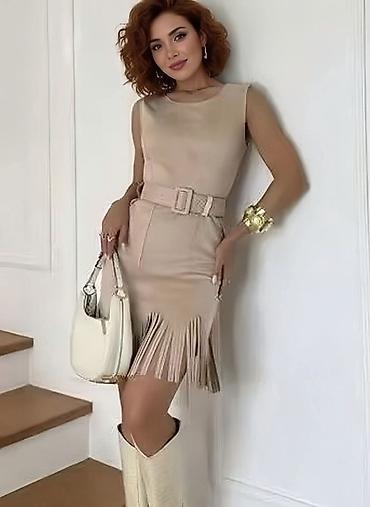 Haljina sa narukvicama, made in Italy. Univerzalna velicina za S,M,L - Boja: puder/bež. - Materijal: glatka, padajuća tkanina prijatna na dodir. - Kroj: midi dužina, blago nabrani struk sa lepršav...