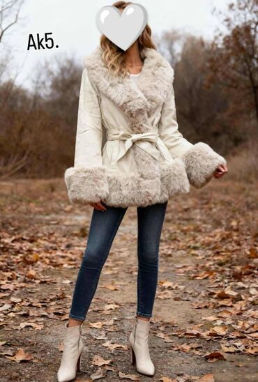 - Elegantna kraća jakna sa naglašenim krznenim okovratnikom/šalom, krznenim manžetnama i krznenim porubom duž donje ivice.