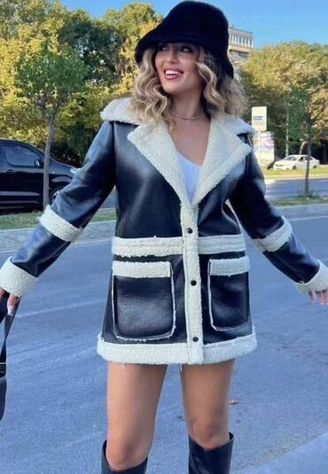 Ženska jakna/kaput od veštačke kože sa krznom (shearling stil)