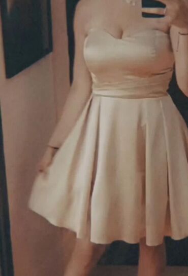 Elegantna koktel/večernja haljina u šampanj/bež nijansi.