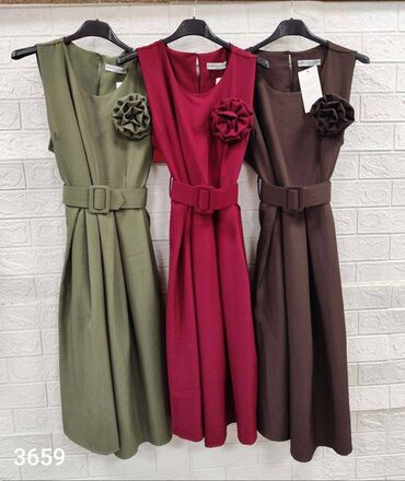 - Detalji: široki tekstilni pojas sa kopčom u istoj boji; dekorativna 3D cvetna aplikacija