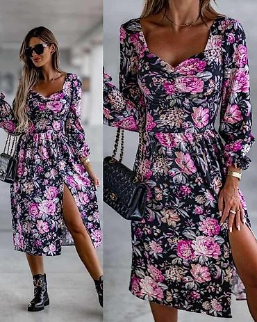 Ženska midi haljina s cvetnim printom