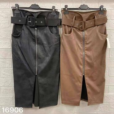 Suknje, eko koza Cena 2800 Velicine:Uni Odgovara za S M L XL Model dostupan u Braon Zelenoj Crno j i Bez Boji V/023