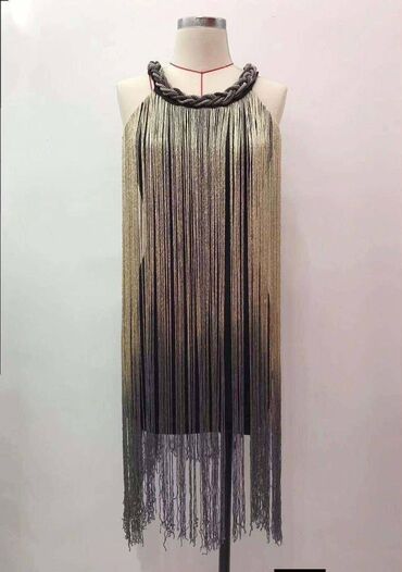 - Dizajn: sloj dugih, gustih resa koje padaju od ramena do iznad kolena i kreću se pri svakom koraku; efekat gradijenta od zlatne ka tamnosivoj/ugljen nijansi.