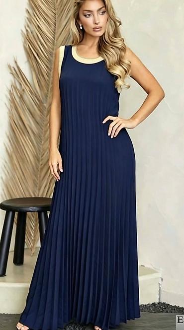 Ženska plisirana maxi haljina bez rukava - Kroj: duga, široka maxi