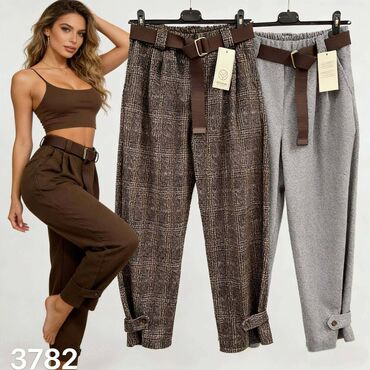 Ženske široke pantalone sa faltama i kaišem - Model: ultra široke nogavice (palazzo), visoki struk, više dubokih falti sa prednje strane za elegantan volumen i lep pad. - Kopčanje: skriveni rajsfe...